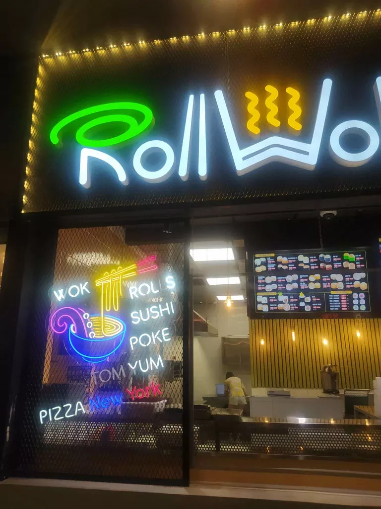 Разработка светящейся интерьерной вывески суши-бара «Roll Wok Club» в Аксае