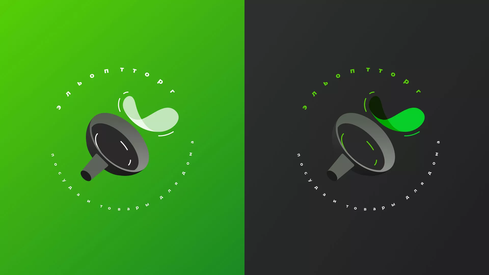 Четвертый вариант логотипа для компании «Эльоптторг» в Аксае. Логотип представляет из себя динамичное изображение сковороды и процесса готовки. Круговая надпись дополняет рисунок и делает логотип более читаемым и понятным.