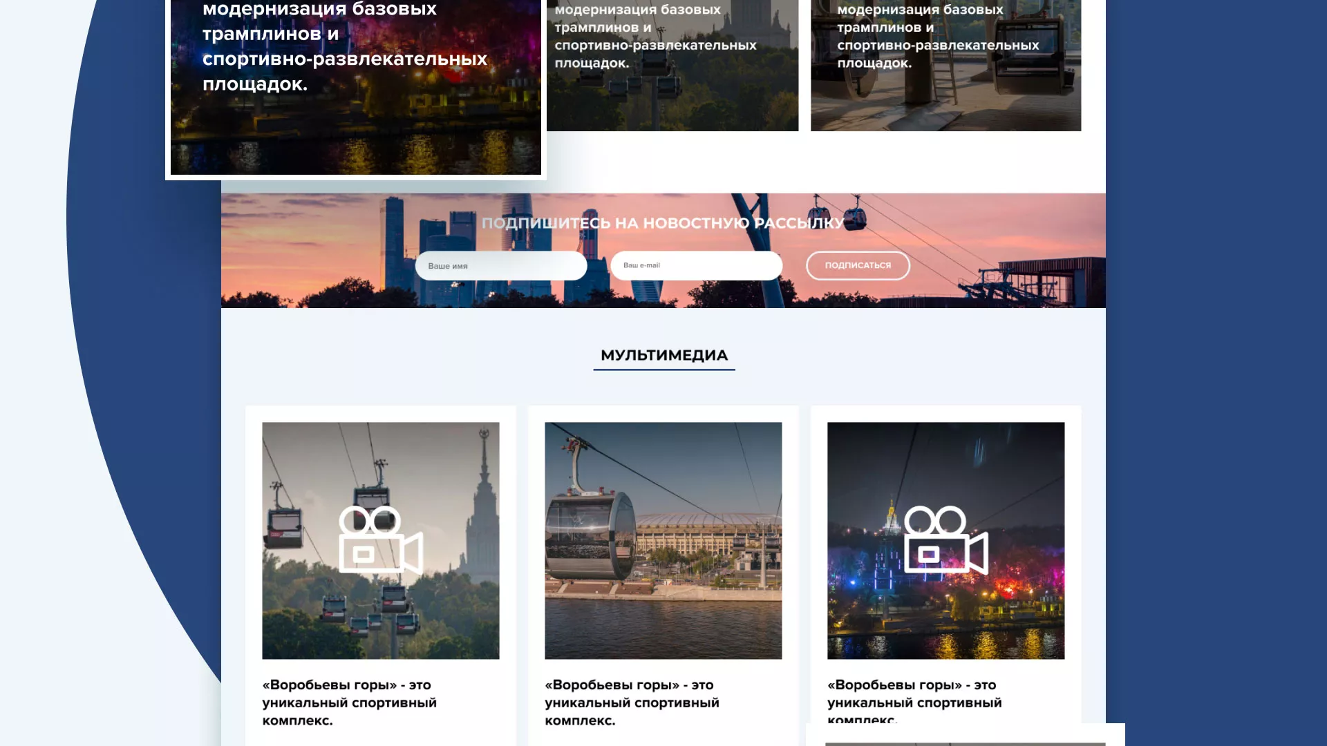 Разработка официального сайта в Аксае для спортивно-развлекательного комплекса «Воробьёвы горы».